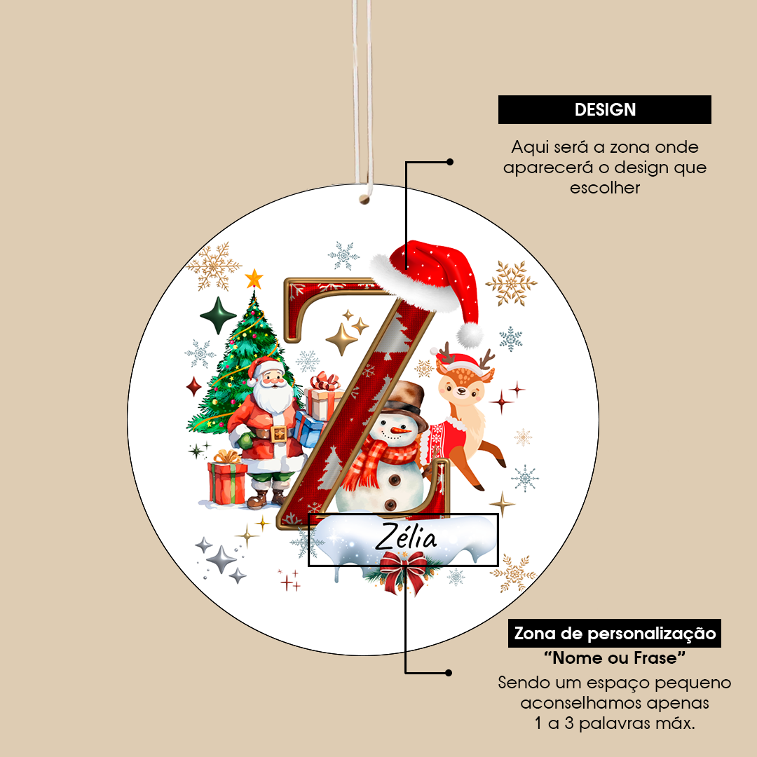 Bola de Natal Personalizada com Inicial A a Z – Iniciais Mágicas de Natal